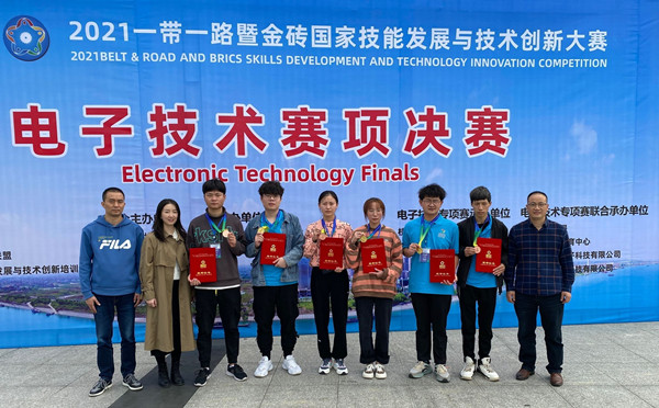 新闻网讯2021一带一路暨金砖国家技能大赛电子技术赛项国内赛决赛于10月11日—13日在湖北枝江职教中心举行,来自全国各类职业院校43支队伍参加比赛。pg娱乐pg娱乐电子游戏官网入口组织参赛队参加该赛项,经过连续5个小时的激烈角逐,应用电子技术专业裴贤、周紫欣、卢存勇荣获高职组团体一等奖,付欢、李宁峰、刘勇军荣获高职组团体三等奖。