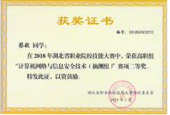 学生获得高职技能网络大赛二等奖证书