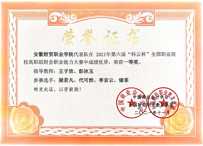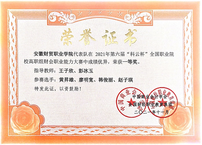 日前,由中国商业会计学会、全国财经职业教育集团主办,厦门科云信息科技有限公司承办的2021年第六届“科云杯”全国职业院校高职组财会职业能力大赛顺利举行,来自全国的500多支代表队脱颖而出,角逐全国决赛。beat365中文官方网站财会金融学院黄昇雄、廖明宽、赵子琪、韩俊丽团队及梁若凡、代可然、储菲、李京云团队,双双荣获一等奖。