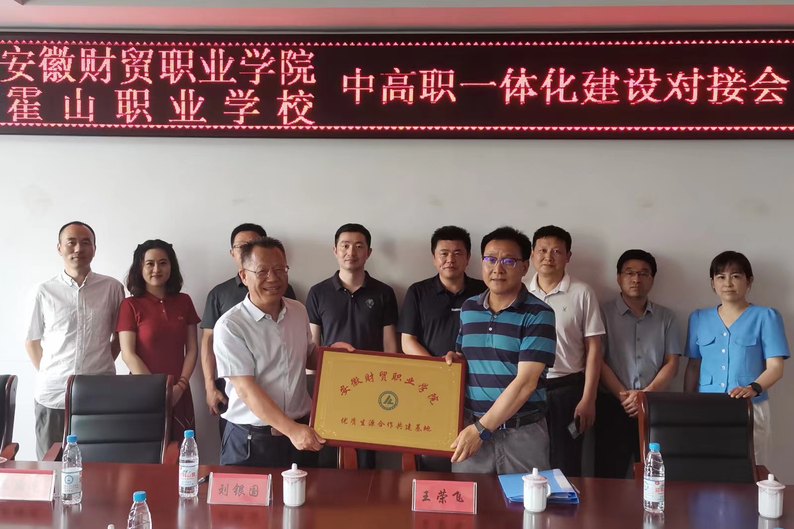 双方共同签订了优质生源基地合作共建意向书。刘银国代表学校向霍山职业学校授予“beat365中文官方网站优质生源合作共建基地”铜牌,为推进两校中高职一体化建设建立了良好开端。
