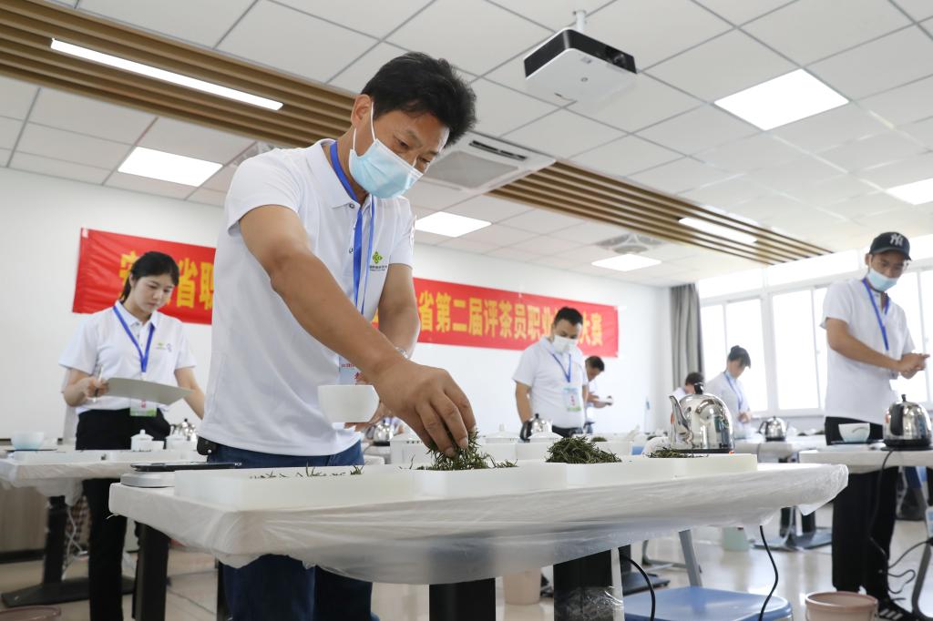 大赛设全能赛和单项赛(红茶单项和绿茶单项)两个组别,以评茶员国家职业技能标准三级(高级工)及以上的知识和技能为要求,从专业理论、茶形辨识、香味排序、品质审定、对样评茶、茶品设计等多个模块进行综合考评,来自全省14个地市近60名选手同台竞赛。