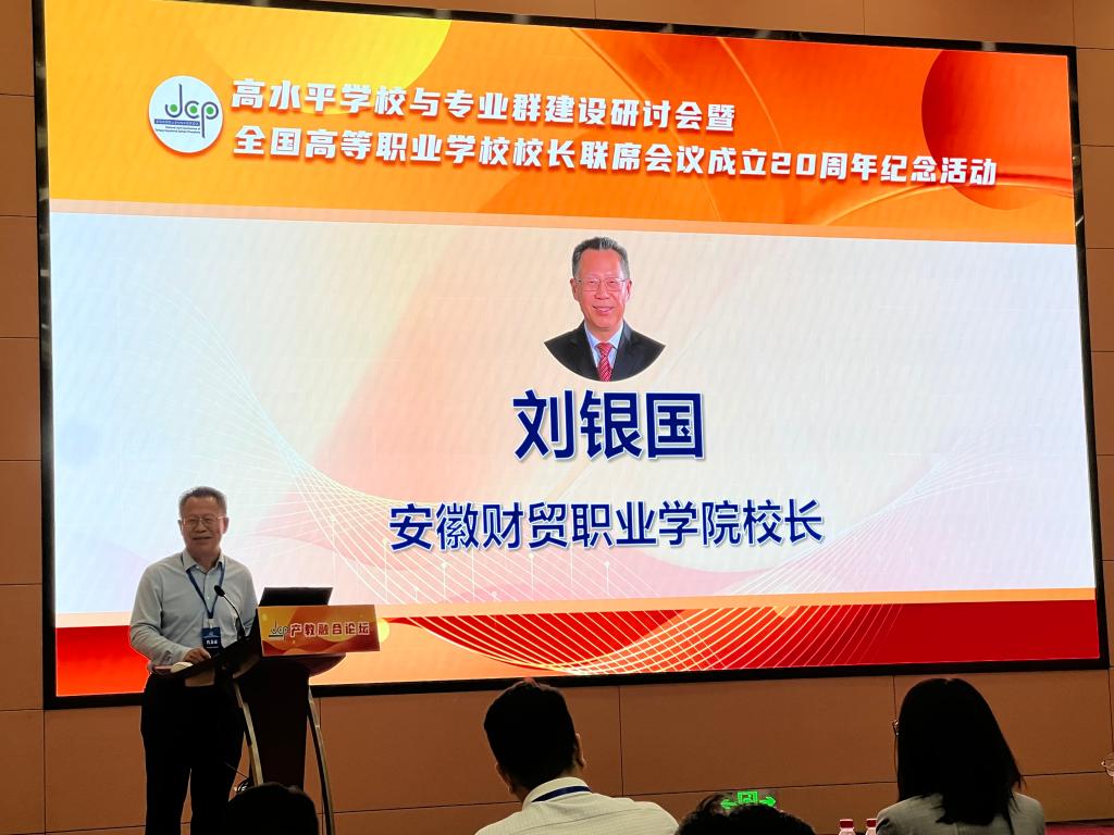 5月19日,学校党委副书记、校长刘银国在合肥参加高水平学校与专业群建设研讨会暨全国高等职业学校校长联席会议成立20周年纪念活动。