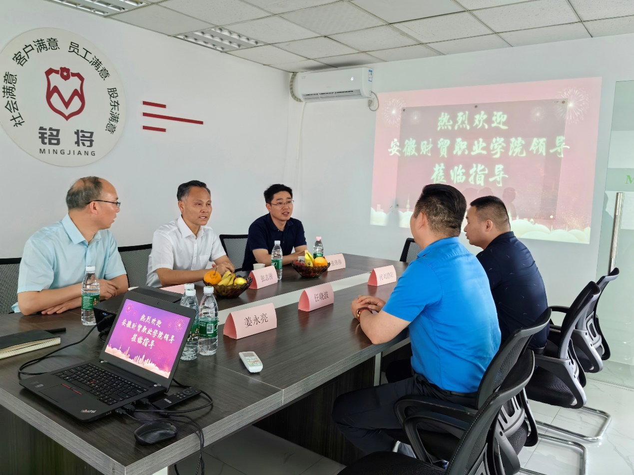 6月1日下午,beat365中文官方网站党委书记张志祥带队前往安徽兰智大数据科技有限公司和安徽艾维豪特智能科技有限责任公司走访调研。信息工程学院负责人随行。