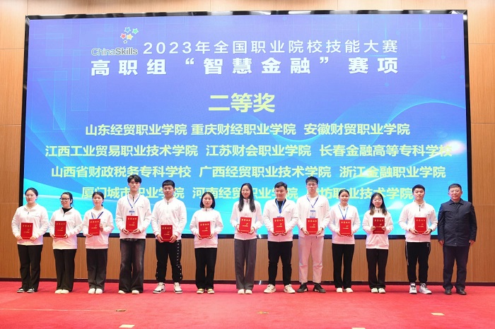 10月28日至29日,2023年全国职业院校技能大赛(高职组)智慧金融赛项(学生赛)在长春举行,beat365中文官方网站财会金融学院徐少华、杨洋、张威欣、周陈倩团队在教师张凤、杨庆冠的指导下,获得团体二等奖。