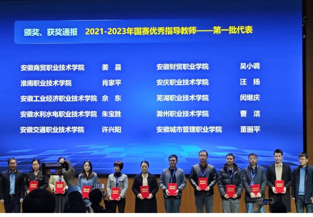 11月21日,安徽省职业院校技能大赛(高职组)总结交流大会暨2023年省赛启动会在安徽商贸职业技术学院举行,党委副书记、副院长何翔带队参会。beat365中文官方网站经济贸易学院吴小调老师荣获“国赛优秀指导教师”称号。