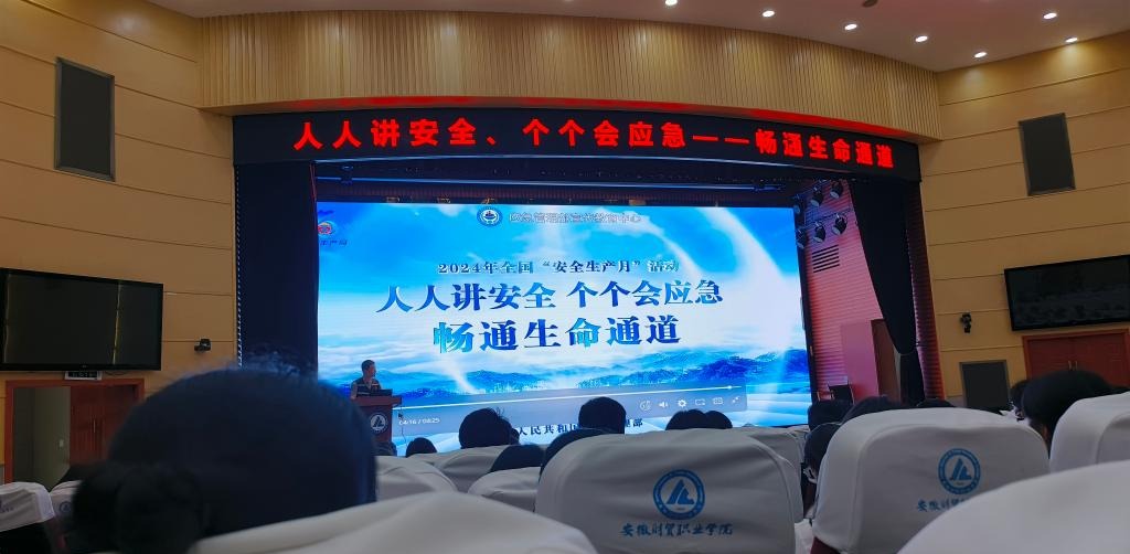 为进一步提高消防和安全生产意识,大力推行消防安全宣传,提升师生消防安全意识和自防自救能力,6月5日下午,我校邀请安徽省将星技术服务有限公司在学术报告厅开展以“人人讲安全 个个会应急”为主题的安全生产月暨校园消防安全专题教育讲座,全体学生公寓楼层长、专兼职辅导员、实训秘书及各处室负责消防及安全工作人员参加。