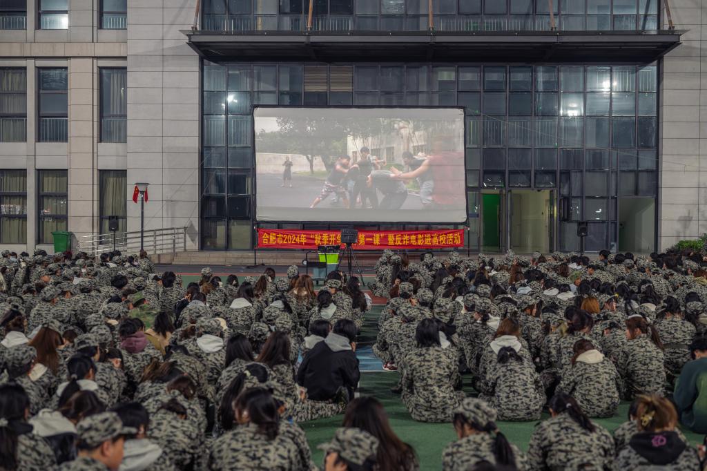10月24日、25日,学校安全管理处、学生处联合合肥市公安局反诈中心组织2024级新生分别在和平校区、翡翠校区集体观看反诈骗题材电影《猎屠》,为新生开展安全教育系列活动。