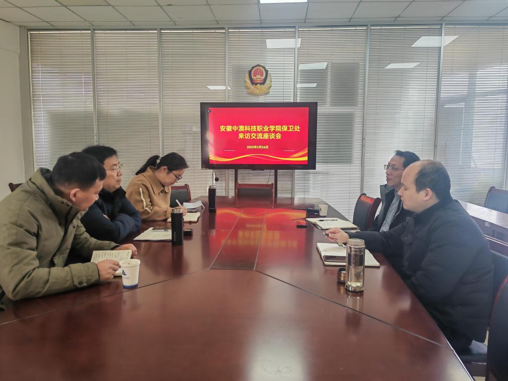 2月26日,安徽中澳科技职业学院保卫处一行来校,就校园安全方面的工作进行交流与座谈。交流座谈会由学校安全管理处处长何步新主持。