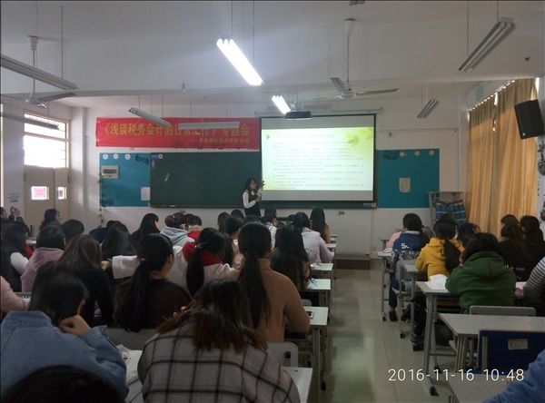 梁修银简要讲述了企业所得税的纳税筹划方法,鼓励同学们要树立纳税筹划理念,以后更好地为企业提供纳税服务。两位高管的讲座紧密结合税务工作实务,培训同学们实务操作技能,让同学们更加坚定了学好专业知识和技能的信心。