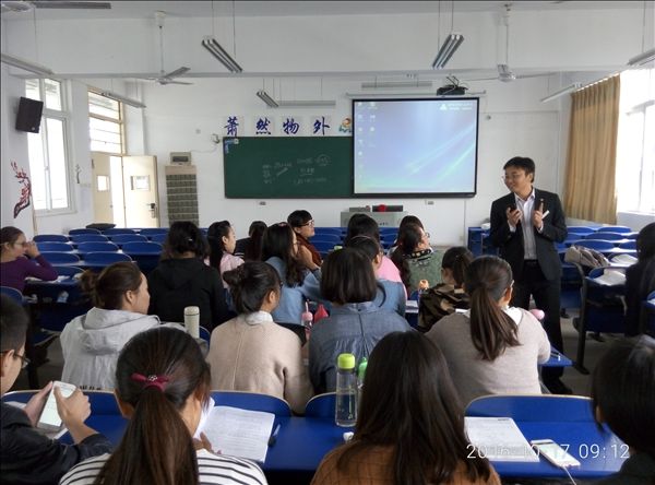 10月18日上午,合肥人寿保险公司理财支公司部门经理、我院校友邱鹏为2014级投资与理财、农村金融专业学生开展就业创业指导。他介绍了公司发展现状和个人工作简历,阐述了保险行业招聘流程和用人条件,结合公司理财团队成员的成长过程,与同学们分享就业、择业与创业的收获和体会,同时开展现场问答、微信互动、入职调查等活动。