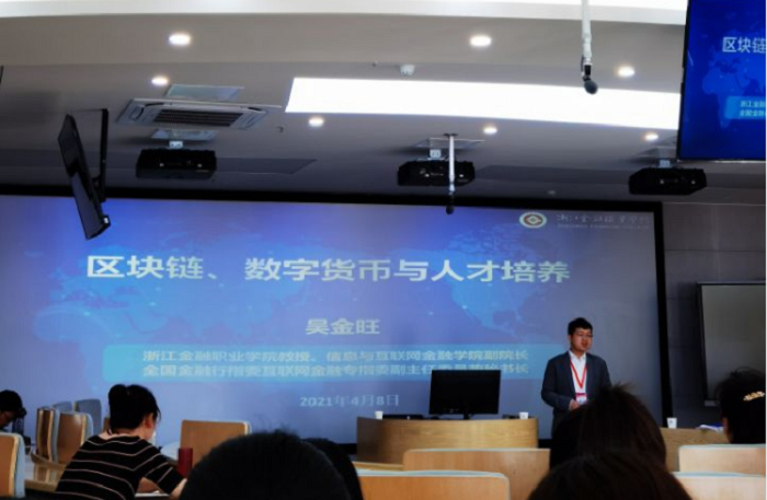 浙江金融职业学院信息与互联网金融学院副院长、全国金融行指委互联网金融专指委副主任委员兼秘书长、高等职业教育互联网金融专业国家教学资源库项目执行负责人吴金旺教授作了题为《区块链、数字货币与金融科技人才培养》的讲座。吴金旺教授首先谈到了金融科技的几个重要的方向,量化金融、区块链金融与数字货币等,然后重点谈到区块链中的区块,我国区块链的发展历程以及重要的发展方向联盟链,BSN(区块链服务网络)的理念联盟链公有化,说明了区块链不仅是一种技术创新,更是一次理念变革,也需要从人文的视觉理解,阐述了区块链对金融交易和资产管理的积极作用,接下来谈到了法定数字货币的发行模式,我国法定数字货币的发行路径和主要特点,最后谈到了规范化的区块链金融人才培养问题,区块链金融的内容、课程特性,造就既懂金融又懂科技的专业人才。