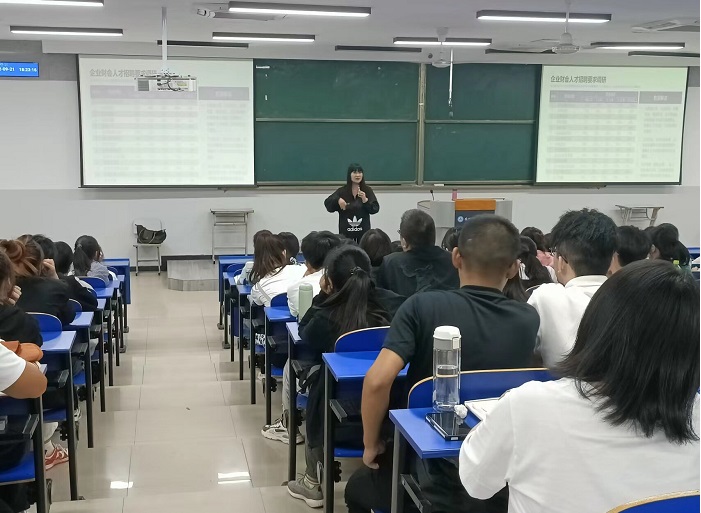谢梅花老9月21日下午在线下进行了大数据与会计专业2205等6个班级的新生入学讲座,她从四个方面—专业介绍、就业面向、培养方案、学习方法出发,帮助新生更加全面透彻的理解大数据与会计专业,为新生提供了方向指导。朱敏经理从企业的岗位设置出发,介绍了企业所需人员应具备的专业素质和职业要求,对学生提出了作为财务人员最基本的职业要求是不做假账。尚丽丽向学弟学妹们介绍了学习的具体方法以及就业方向的选择。