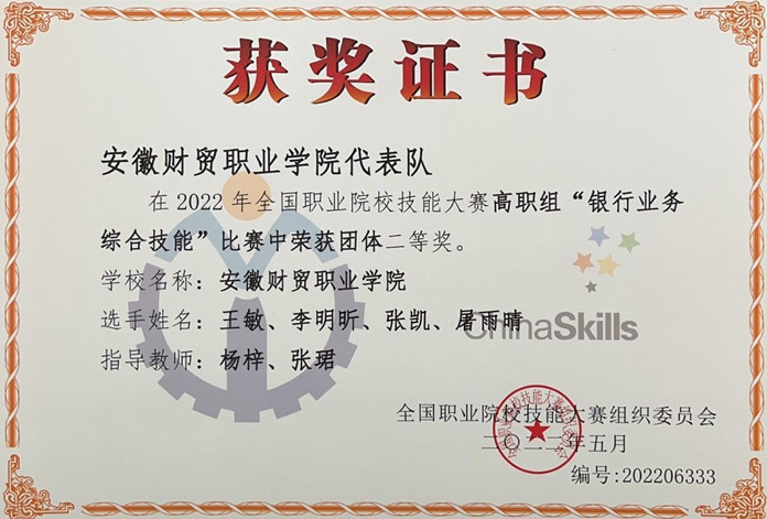 我院荣获2022年全国职业院校技能大赛(高职组)“银行业务综合技能”赛项二等奖