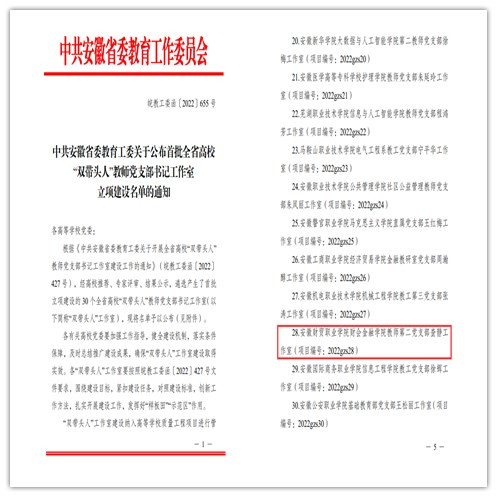近日,省委教育工委公布了首批全省高校“双带头人”教师党支部书记工作室立项建设名单,共遴选建设30个“双带头人”工作室,财会金融学院教师第二党支部查静工作室成功入选,是省委教育工委对我校教师党支部建设成效的充分肯定,也是学校党委全面加强基层党建工作取得的一项省级成果。