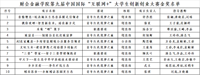 近日,第九届中国国际“互联网+”大学生创新创业大赛安徽省赛举行。财会金融学院参赛队继在前几届的优秀成绩基础上,再创新高续写辉煌,共斩获10项金奖。