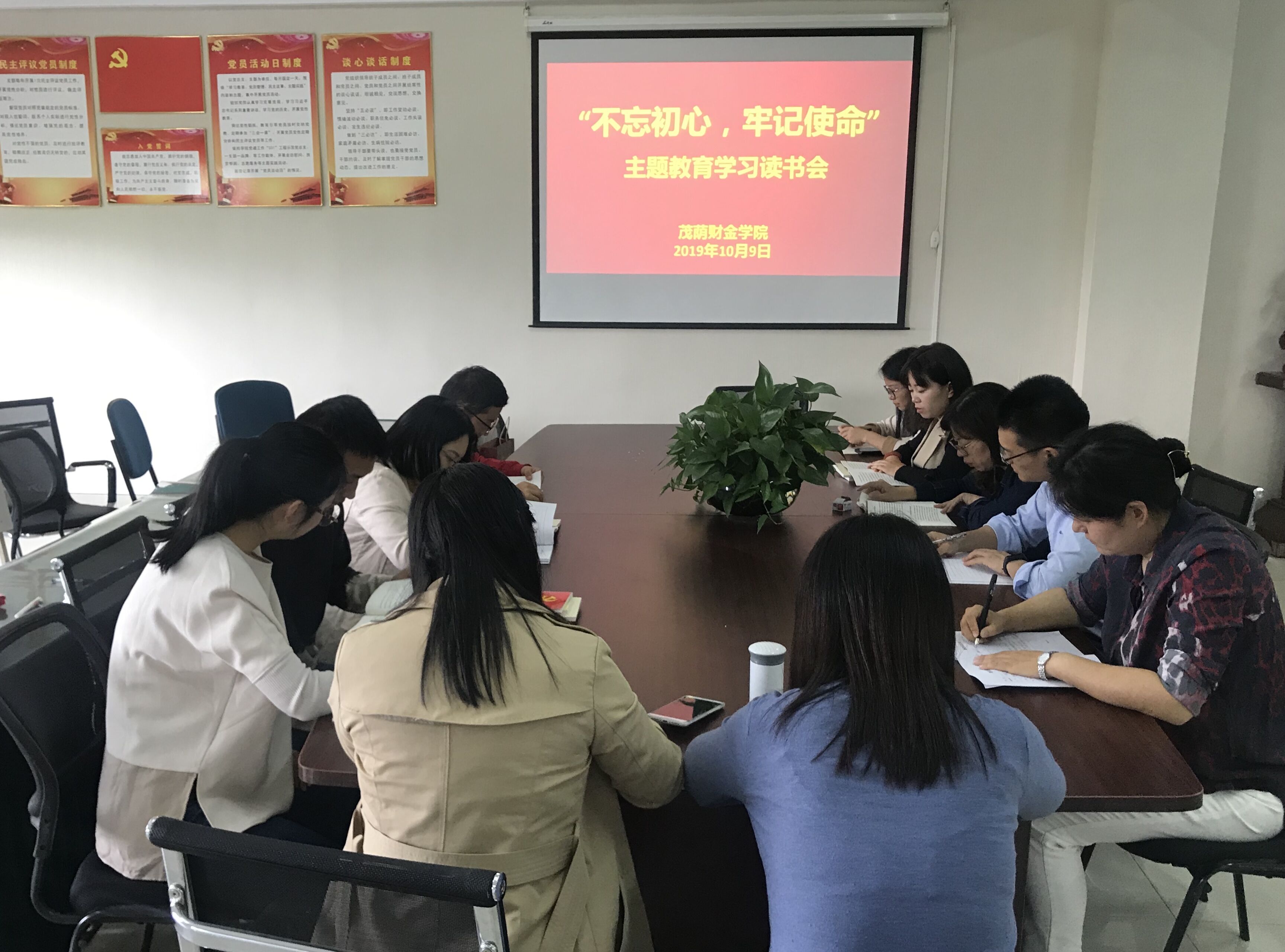 10月9日下午,茂荫财金学院党总支组织开展“不忘初心、牢记使命”主题教育学习读书会,全体党员参加学习,党总支副书记葛瑶主持学习读书会。