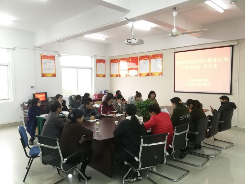 12月26日下午,茂荫财金学院在教师办公室召开《新时代高校教师职业行为十项准则》学习会,全体教职工参加学习会。茂荫财金学院党总支副书记葛瑶主持学习会。