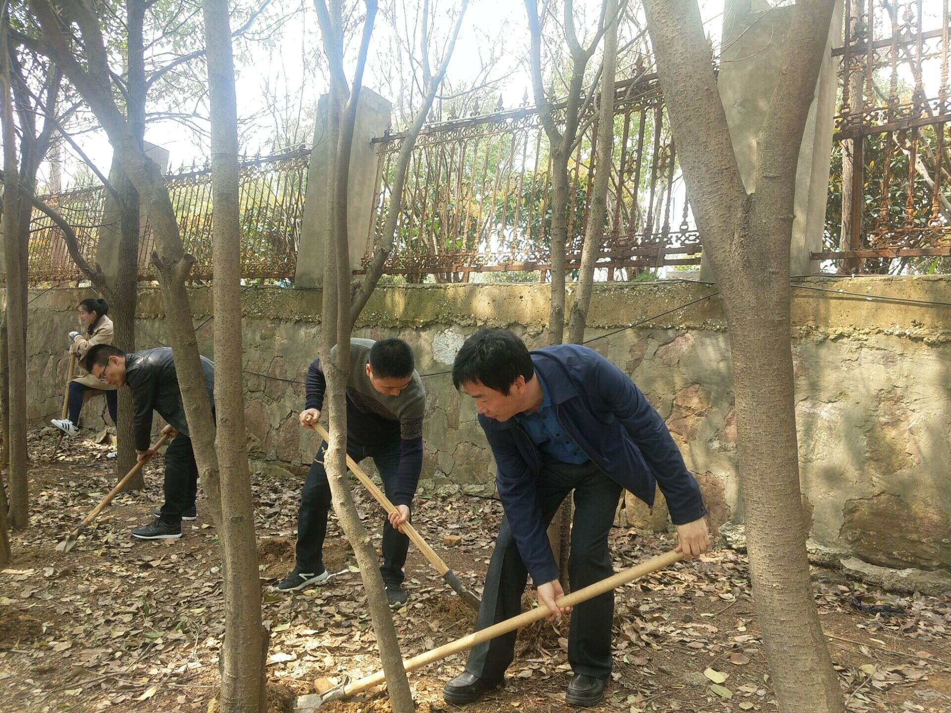 当天中午,茂荫财金学院全体党员老师和积极分子拿起铁锹、剪刀和水桶,分散在支部林各处,大家合理分工、互帮互助、齐心协力,为支部林松土、修枝、浇水,努力用自己的实际行动,让安财贸的青翠更有生机。