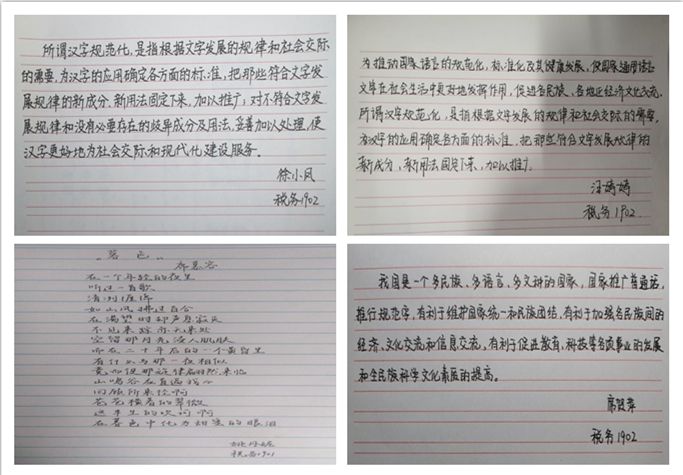 写规范字,筑中国梦。茂荫财金学院团总支组织开展以“写好规范字,共筑中国梦”为主题的规范字书写活动,让同学们在规范、准确书写汉字的过程中,接受传统文化的艺术熏陶,感受中国汉字的伟大魅力,增强中华优秀传统文化的生命力和影响力,为实现国家富强、民族振兴、人民幸福的“中国梦”不懈努力。