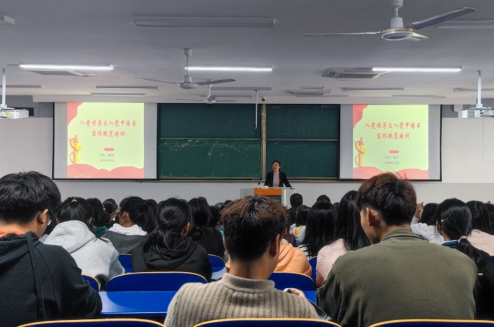 为进一步做好党员发展工作,鼓励更多的同学向党组织靠拢,2021年11月2日,财会金融学院学生党支部组织委员胡云芳对213名21级新生开展了题为“入党程序介绍及入党申请书写作规范培训”的主题党课。