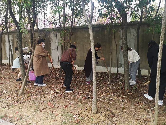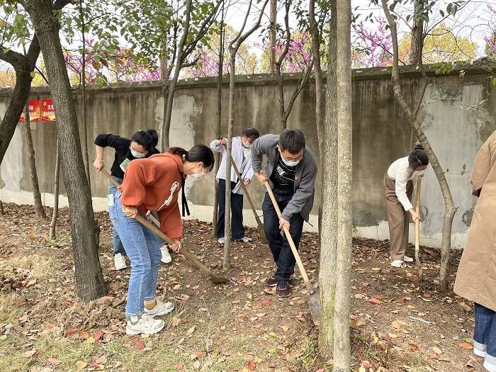 活动中,党员同志们干劲十足,挥锹挖坑、扶树松土、提水浇水、清理落叶,分工明确,相互配合,有条不紊。铁锹的每次挥动都饱含着党员同志们对林木茁壮成长的期望,水桶的每一次灌溉都滋养着党员同志们对建设美丽校园的初心,同志们以实际行动践行绿色发展理念,助力美丽校园。