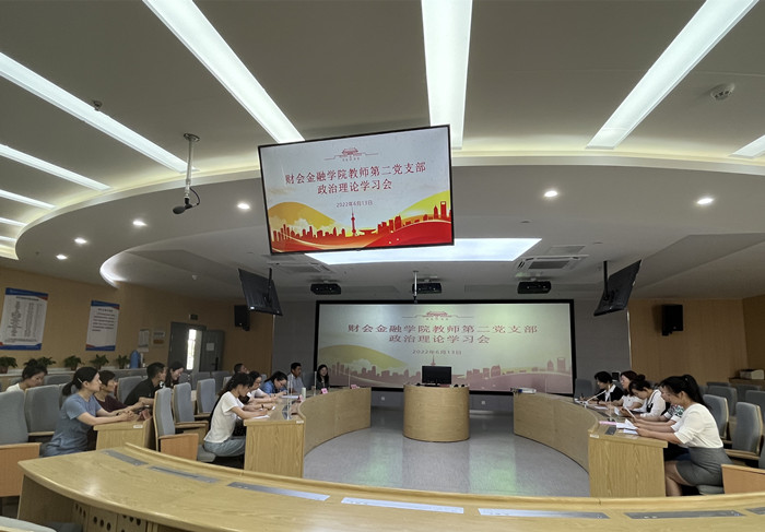 6月13日下午,财会金融学院教师第二党支部于新实训楼A502召开政治理论学习会议,会议由支部书记查静主持,支部全体党员参加学习。
