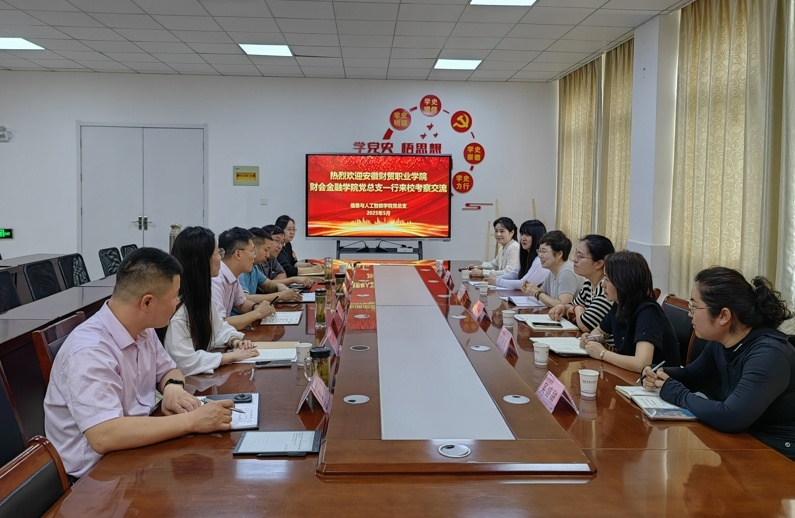5月22日上午,财会金融学院党总支书记胡宏萱带队赴安徽商贸职业技术学院信息与人工智能学院学习调研,党总支副书记左艳琼、党总支委员、师生党支部教师代表参加学习交流。
