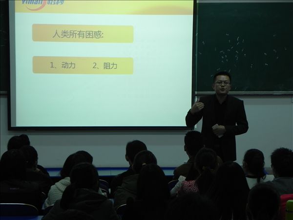 计应9914班毕业生朱朋虎目前是中国电信集团安徽分公司签约战略合作伙伴,2010年9月创建了怡秒苹果专卖连锁集团,成为安徽省第一家苹果专卖连锁公司。他以激情澎湃的全场互动方式,以“21世纪比拼的是爱力”为主题,讲述了自己和在座很多同学一样,十五年前从农村来到都市,学校毕业后进入职场的困顿迷茫。他在回顾自己成长经历时特别感谢母校,感谢母校开展的口语训练活动,因为进入职场后,他才感受到是母校的口语训练帮助他克服了在陌生人前表达自己思想的内心恐惧,帮助他一步步成就事业。他还以自己最初靠借20个乡亲户口本到农信社贷到的40万元贷款起家,开了第一家诺基亚专营店获第一桶金,后来及时顺应市场变化专营苹果手机的创业经历,告诉大家:“成就大小取决于爱的格局有多大”。他还勉励大学生踏入社会之后应正确对待动力与阻力。创业的动力来源于不同层级的大爱小爱,而对于阻力,则要主动出击。
