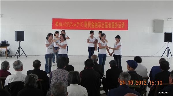 当天下午,由财税金融系党总支副书记李秀珍亲自率队,40余名志愿者登台为该敬老院表演了歌曲、舞蹈、吉他弹奏、相声、手语、朗诵及书法等丰富多彩的文艺节目,受到了老人的热烈欢。为了增强演出效果,该敬老院院长彭本青还专门请来了专业的音响师配乐,加强了节目的感染性。