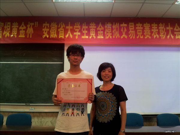 6月29日下午,为期两个月的首届“富垠黄金杯”安徽省大学生黄金模拟交易大赛在安徽大学举办了表彰大会,我院财税金融系投资1002班杨凯同学以个人第七名获得二等奖的好成绩亦在受表彰之列,获奖金1000元人民币。