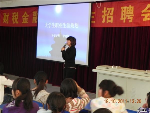 10月18日中午,华安证券公司金寨路营业部徐晓丽女士应财税金融系的邀请,来院做就业指导讲座。财税金融系党总支副书记李秀珍出席讲座。