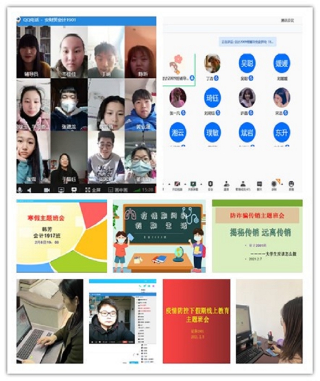 寒假开始后,财会金融学院全体辅导员利用腾讯会议、微信群、QQ群等各类网络平台陆续召开了线上主题班会,引导学生疫情防控下科学规划理论学习与社会实践,合理安排寒假生活。
