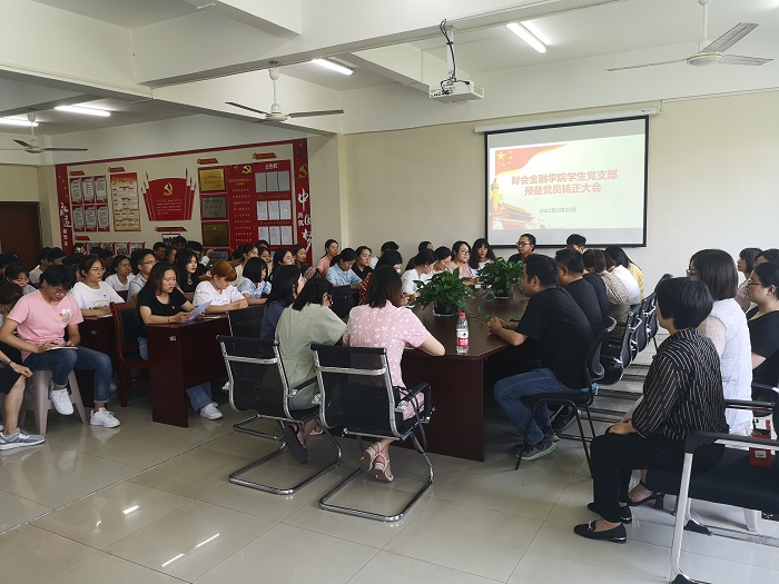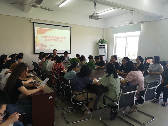 会上,李健介绍了15名预备党员在预备期的基本情况,随后,预备党员们就思想、学习、工作、生活等方面向党组织做了汇报并宣读了转正申请,表示今后会更加严格要求自己,不断充实完善自我、提高理论水平,在新时代下做敢担当、勇担当、真担当的优秀党员。与会党员经过充分评议投票,一致同意15名预备党员按期转正为中共正式党员。财会金融学院党总支书记胡宏萱向按期转正的15名预备党员表示祝贺,并提出殷切希望,要时刻牢记党员身份,永葆入党初心,加强政治理论学习,不断提升党性修养;要始终以党员标准严格要求自己,充分发挥党员先锋模范带头作用,以实际行动践行全心全意为人民服务的宗旨;要持续加强“四史”学习,要在真学真信中坚定理想信念,在学思践悟中践行初心使命。(供稿:沈丽萍  审稿:李健)