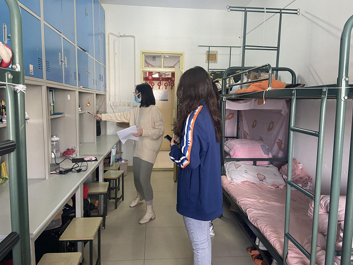 为进一步加强学生宿舍文明养成教育,增强安全意识,3月8日,在党总支书记胡宏萱、副书记李健带领下,学生秘书、全体专职辅导员走访了2020级和2021级所有宿舍,在学校第十五个安全卫生文明月正式开始前,对宿舍安全卫生情况展开全面检查。
