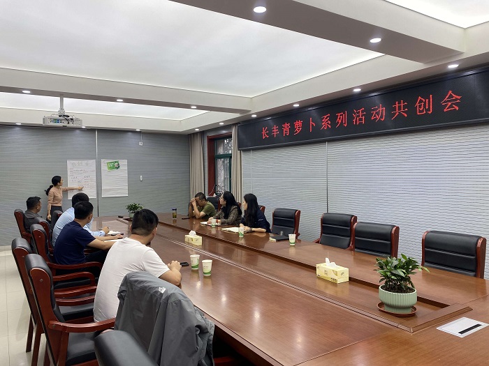 会上,双方就长丰青萝卜系列活动进行共商共创。结合当地青萝卜品牌特色,学院策划并介绍了“萝卜绘”彩绘活动、“萝卜乐”采摘大赛、“萝卜趣”雕刻大赛、“萝卜宴”烹饪大赛、“萝卜吟”诗词大赛等青萝卜系列活动,与会人员就活动开展进行深入交流讨论并凝聚共识。会后,团队前往左店镇青萝卜种植基地进行实地参观调研。