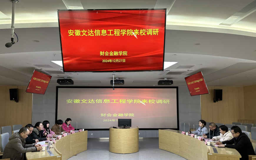 12月27日下午,安徽文达信息工程学院会计学院党总支副书记、副院长刁建刚,教工党支部书记、院长助理周周一行四人来我校财会金融学院调研交流,推动双方签署党建共建协议。财会金融学院党总支副书记左艳琼,教师第一党支部书记李麟、副书记王飞洋及支部党员教师参加会议。