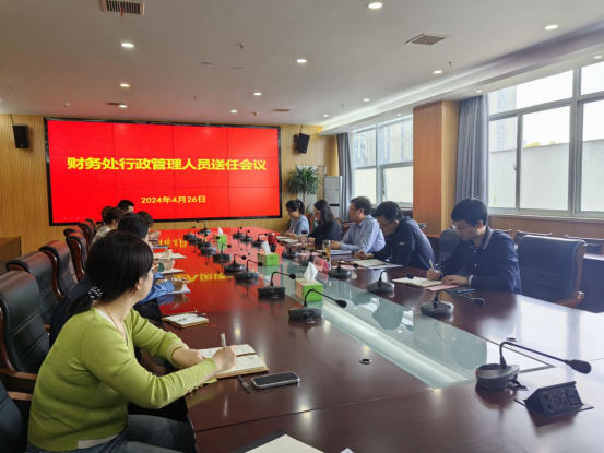 4月26日上午,财务处在行政楼204会议室召开行政管理人员送任会议。学校党委委员、副校长胡戴新,党委委员、人事处处长吴元君出席会议。财务处处长唐学华主持会议。财务处全体成员参加会议。