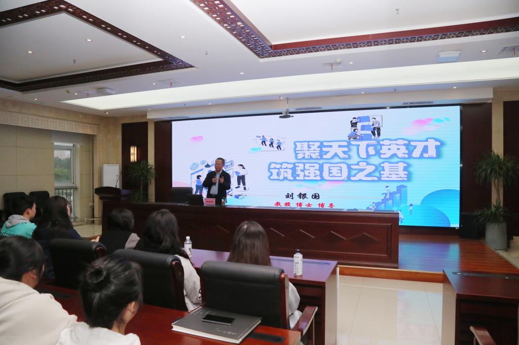 党委副书记、校长刘银国以《聚天下英才筑强国之基》为主题,从为什么要提出人才强国战略、新时代人才培养工作和怎样加快建设国家人才力量等三个方面,全面阐释了教育、科技和人才为现代化建设提供战略性支撑的深刻内涵。