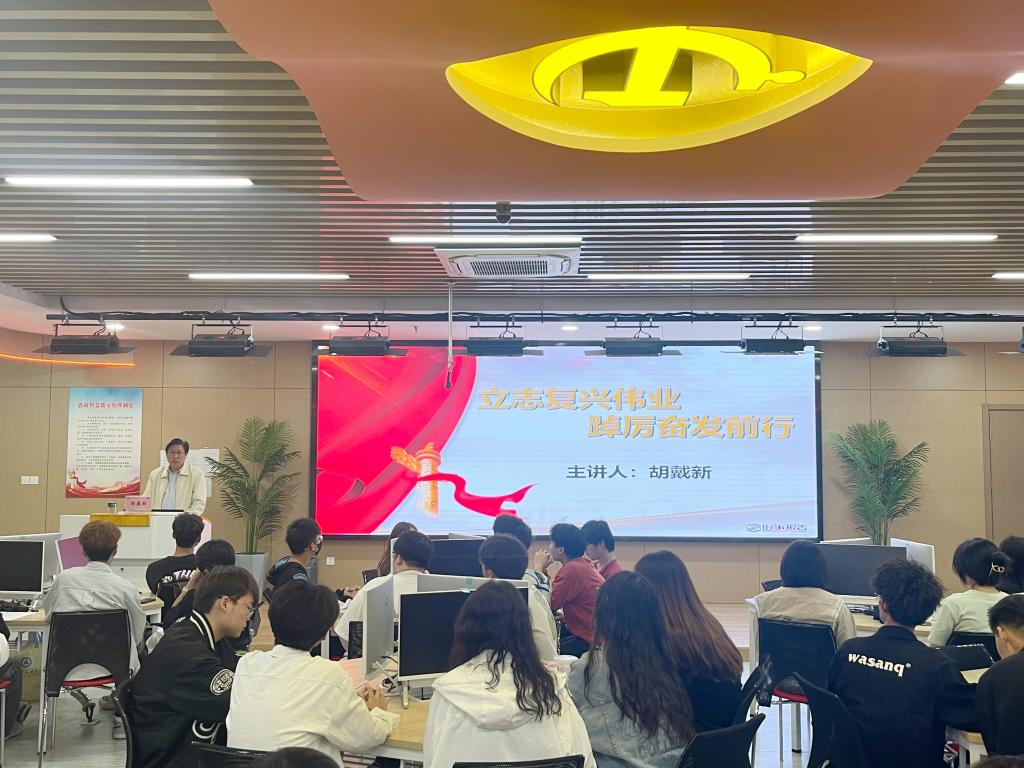 党委委员、副校长胡戴新以《立志复兴伟业踔厉奋发前行》为主题,阐述了在新时代的背景下中国取得的伟大成就,鼓励青年学生在为实现中华民族伟大复兴的征程中书写精彩篇章。