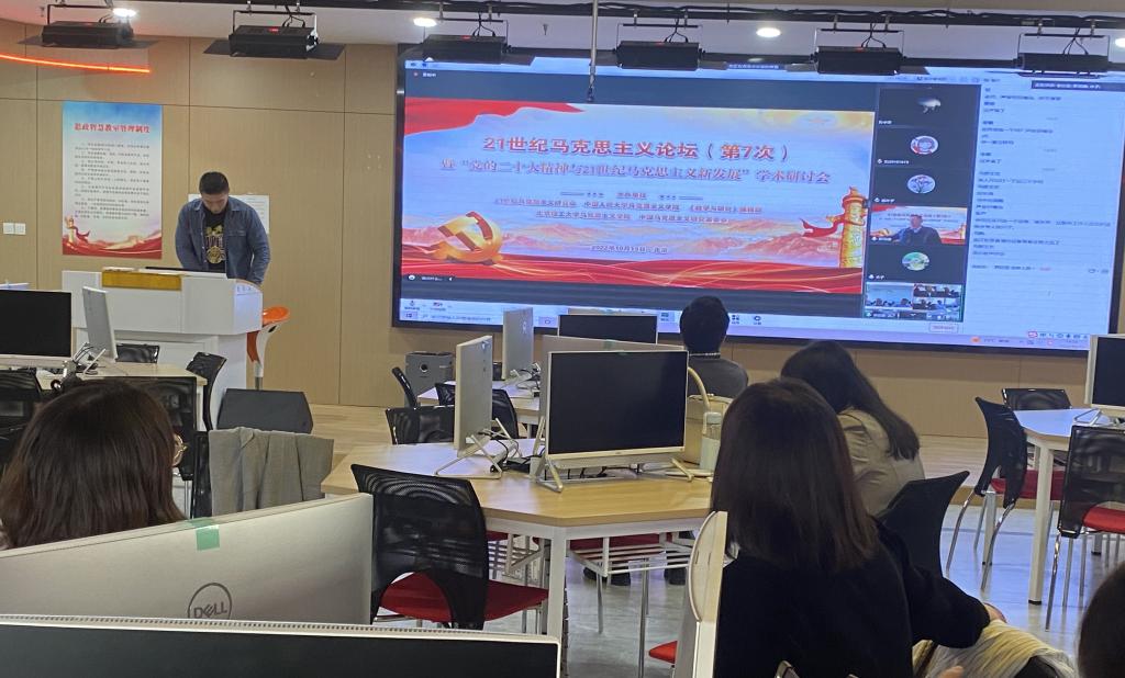 为全面贯彻落实党的二十大精神,深入研究学习学术前沿问题,10月20下午,马克思主义学院在智慧实训室组织全体教师线上收看21世纪马克思主义论坛(第7次)暨“党的二十大精神与21世纪马克思主义新发展”学术研讨会。