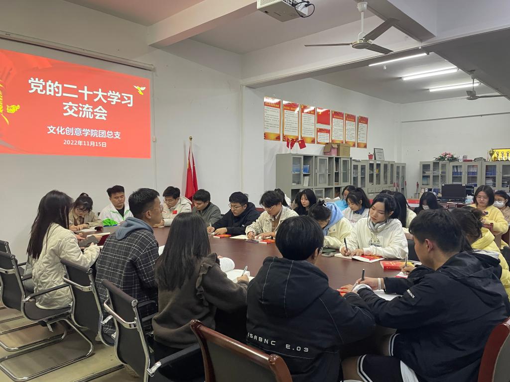 为深入学习宣传贯彻党的二十大精神,提高学生干部的思想政治觉悟,推动我院学生组织更好更快发展,文化创意学院团总支组织于11月15日召开学习交流会,会议由团总支书记刘凯主持,各班级团支部书记参加会议。