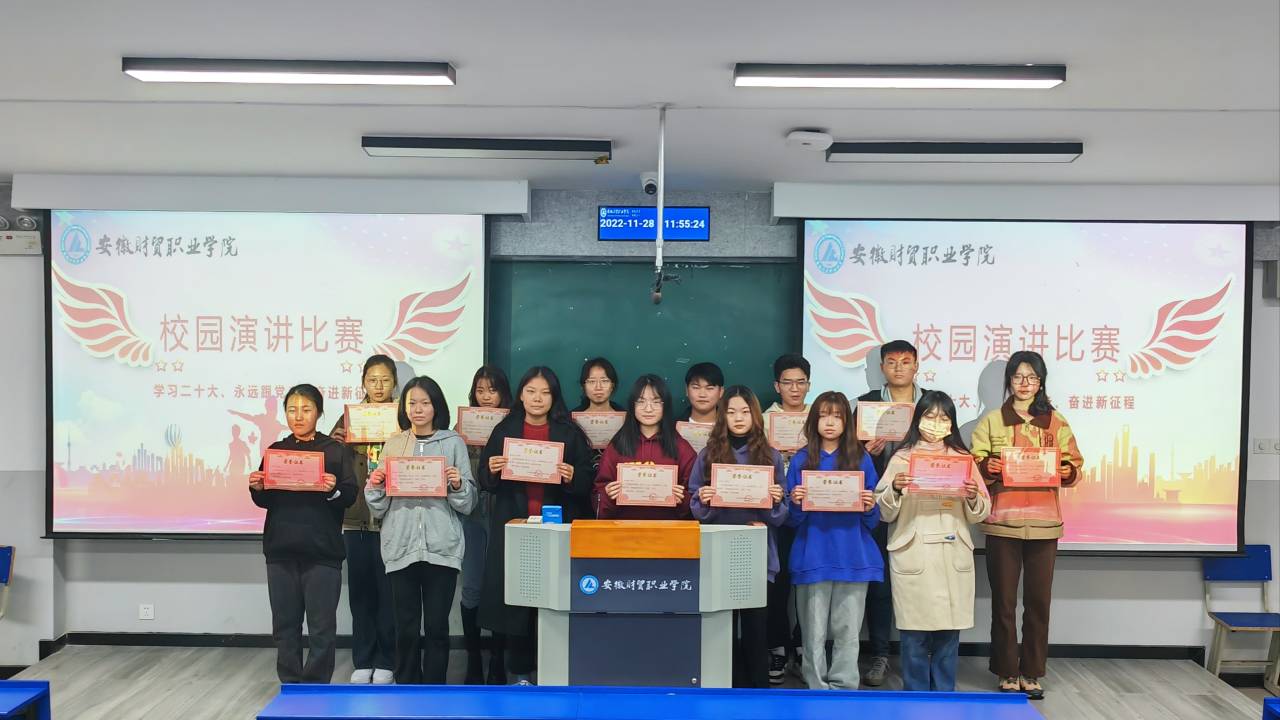 11月26日下午,校团委在翡翠校区6201教室举办“学习二十大 永远跟党走 奋进新征程”主题演讲比赛。旨在深入学习宣传贯彻党的二十大精神,进一步引导广大青年学生争做有理想、敢担当、能吃苦、肯奋斗的新时代好青年。