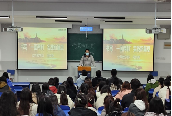 12月5日中午,公共教学部党总支副书记何步新作了题为“书写‘一国两制’实践新篇章”专题报告会,公共教学部百余名团学干部及学生代表参加学习。