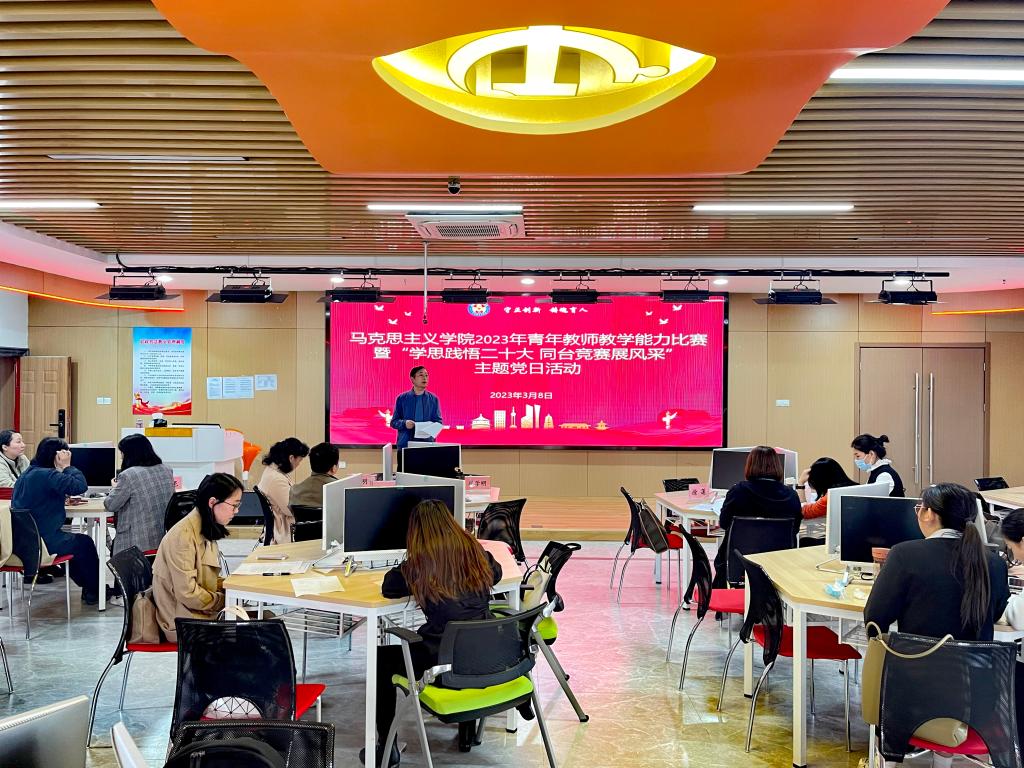 为持续提升教师教学能力与水平,弘扬优良师德师风,充分发挥教学竞赛在提高教师队伍素质中的示范引领作用,3月8日下午,马克思主义学院开展2023年青年教师教学能力比赛暨“学思践悟二十大 同台竞赛展风采”主题党日活动。马克思主义学院副院长崔学明主持比赛,马克思主义学院教研室主任和教授担任比赛评委。