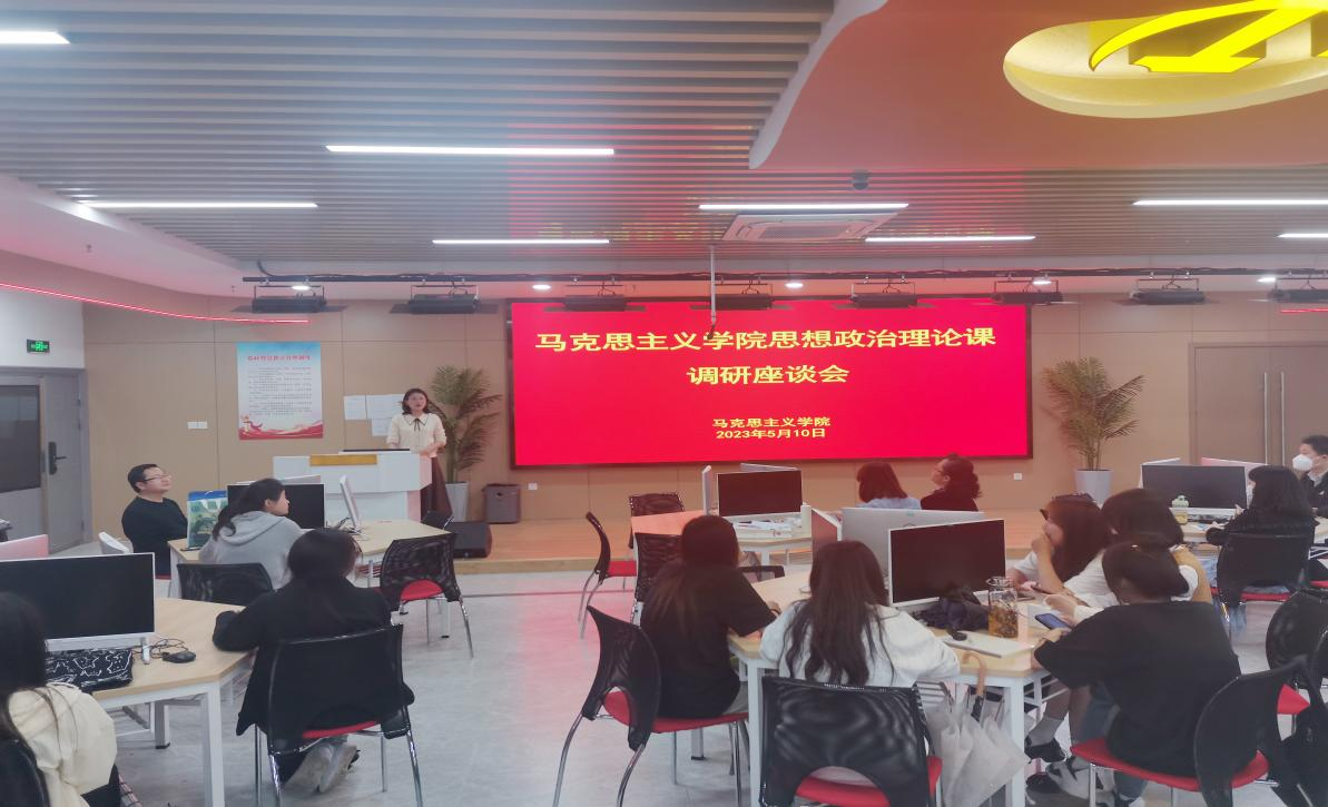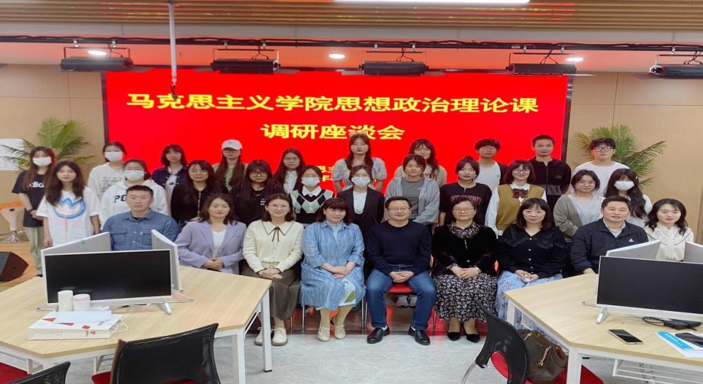5月10日下午,马克思主义学院结合主题教育要求在智慧实训室召开马克思主义学院思想政治理论课调研座谈会。马克思主义学院全体教师、大一班级思政委员、学生代表参与,学院办公室主任郭清主持会议。