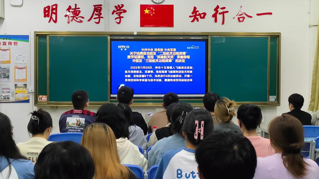 活动组织了全校各班级团支部观看神舟十二号至十五号航天员授称颁奖大会并开展主题团日活动。通过观看颁奖大会,大家进一步了解了航天精神,感知祖国航天事业的进步,感受科技创新发展的魅力,不由自主地向航天英雄致敬。