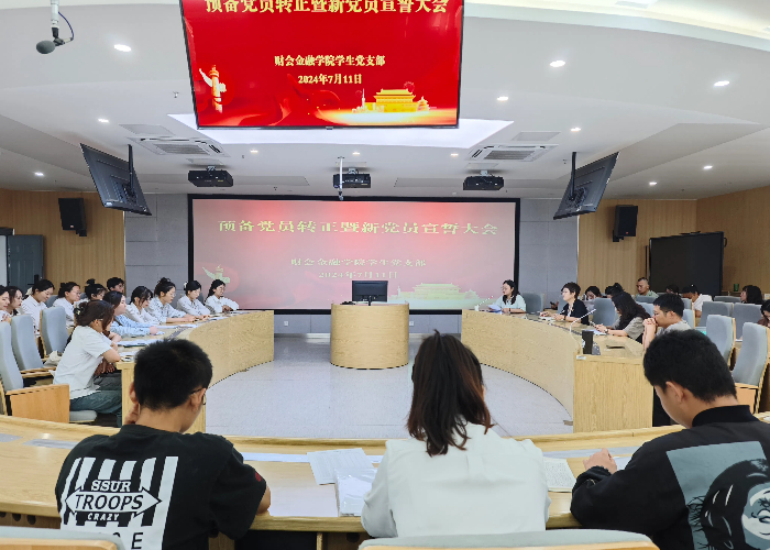 7月11日下午,财会金融学院学生党支部在新实训楼A502召开预备党员转正暨新党员入党宣誓大会。财会金融学院党总支书记胡宏萱、副书记左艳琼和支部全体师生党员参加会议。