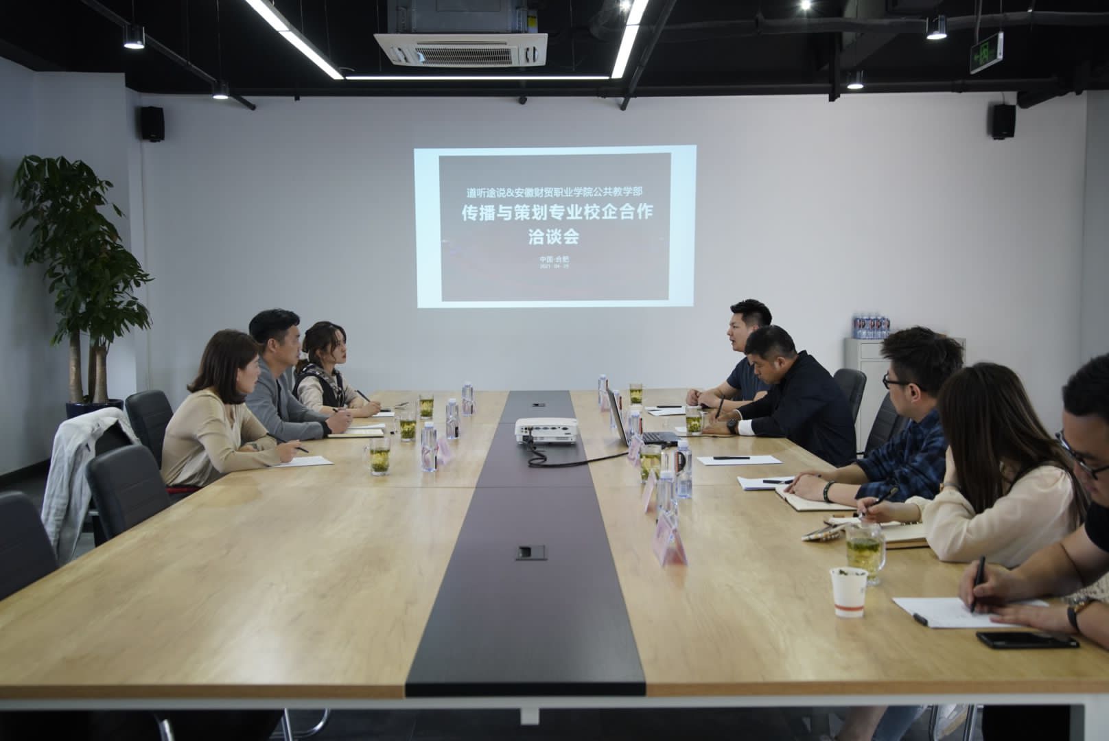 为了提升传播与策划专业建设的适切性,4月30日下午,公共教学部主任王学峰、副主任陈伟、人文教研室主任赵倩赴安徽道听途说文化传播有限公司走访调研,围绕行业发展的前沿动态以及企业对专业人才的培养要求与公司董事长苏志鸿、创意总监曹千一等5人展开了研讨与交流。