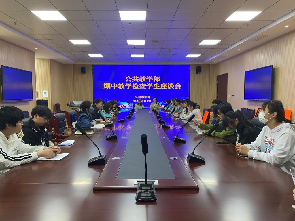 4月13日,公共教学部在行政楼会议室召开期中教学检查学生座谈会。会议由公共教学部副主任陈伟主持,教学秘书胡云芳、实训秘书查露露、在校各班级学委、信息员及学生代表参加座谈。