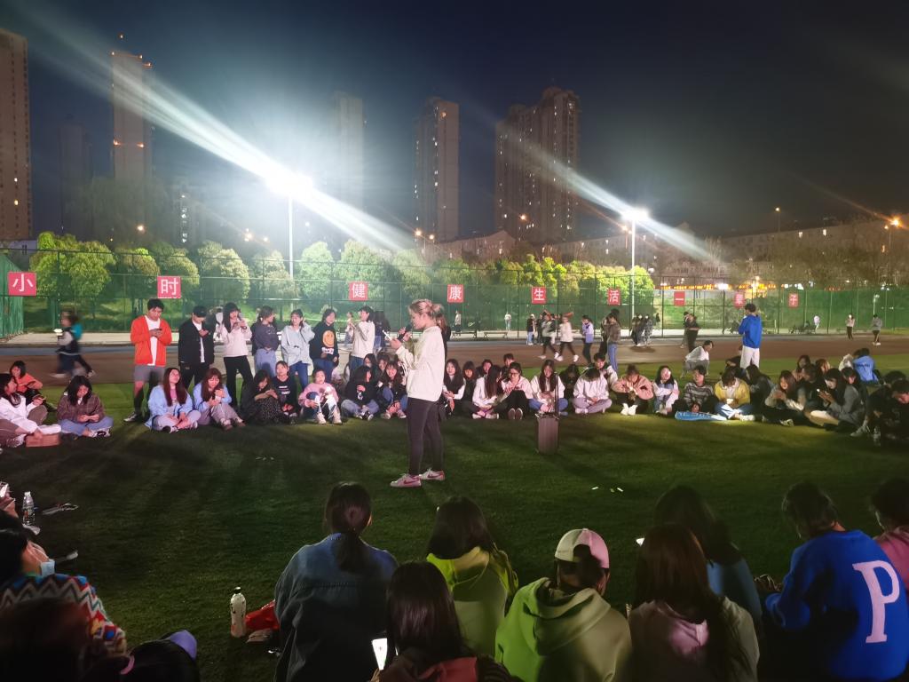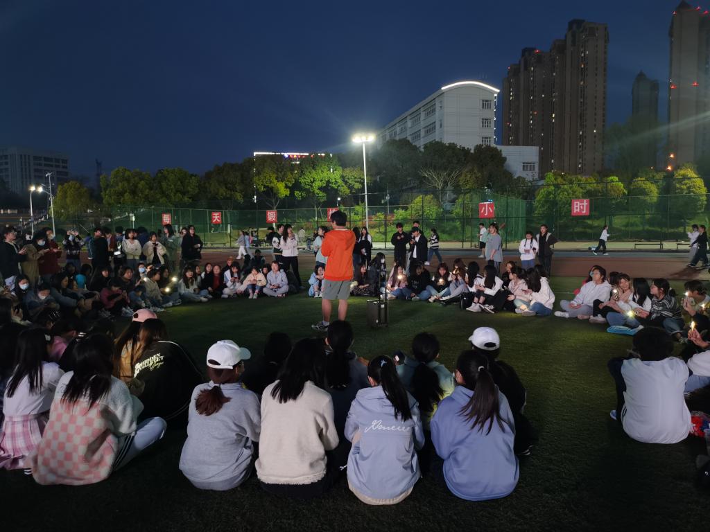 夜幕降临,参与活动的同学们围坐一圈,伴随着掌声和欢呼声,“草地音乐节”缓缓拉开帷幕。同学们打开了手电筒,挥舞着的灯光仿佛夜空中的点点星光,为夜幕下的舞台更添一丝浪漫。流行音乐、说唱、民谣、摇滚、迪斯科……观众们时而轻声唱和,时而随着音乐一起舞动,现场氛围一片欢乐融洽,音符随着歌声在操场跃动。歌声消散了疫情所带来的阴霾,让同学们短暂地忘却烦恼,首届“草地音乐节”在同学们的欢声笑语中圆满落幕。